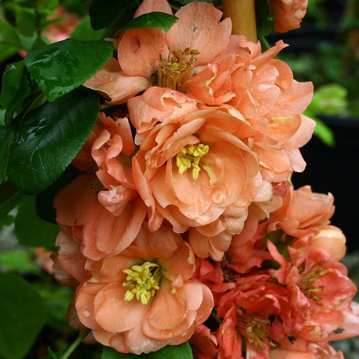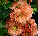 Цветет махровыми, абрикосово-персиковыми цветками.