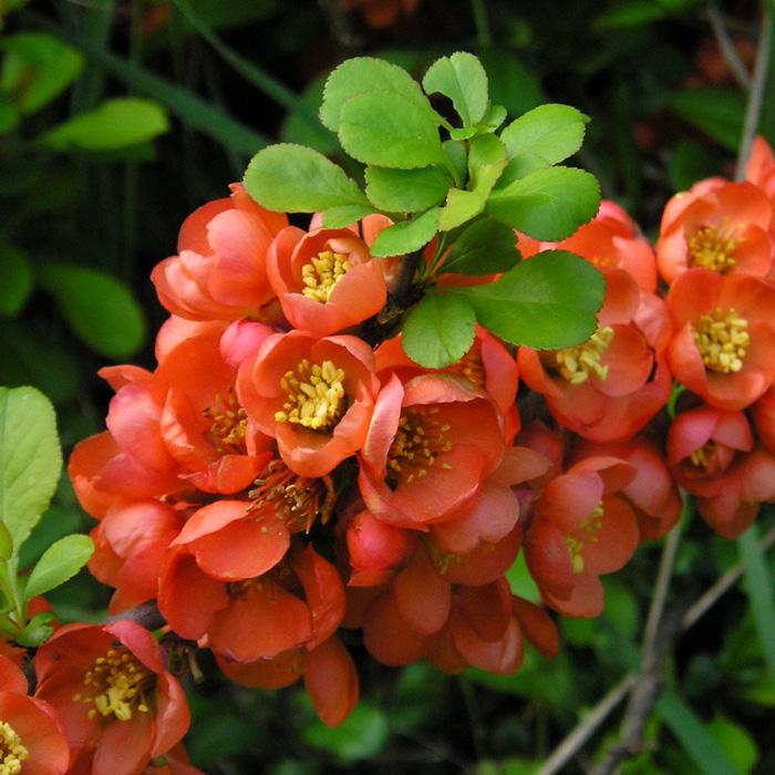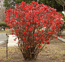 Цветет в мае, до распускания листьев. Бутоны раскрываются неодновременно, и время цветения длится 3 - 4 недели. Цветки крупные, диаметром 5 см, шарлахово-красные, собраны в щитки по 2-6 штук.