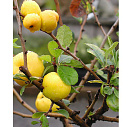 Плоды плотно сидят на ветках. Съедобные, ароматные, до 6 см в диаметре, желто-зеленые, созревают в конце сентября - в октябре перед самыми заморозками. Вес 30-45 г. Обычно дозревают в лежке.