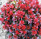 Молодые листья тёмно-розового цвета, а внутри куста зеленые с багровым налетом. "Взрослые" листья пурпурные или красно — коричневатые, кожистые блестящие, яйцевидные до 1 см длиной. Осенью практически не меняет окраски.