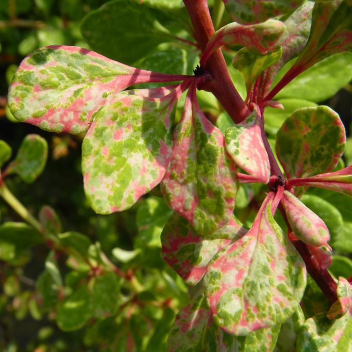 Листья яркие, меняют окраску в течение сезона. Весной листва зеленая с белыми и кремовыми мазками. К середине лета сорт приобретает максимальную декоративность, окраска состоит из комбинации кремового, ярко-зеленого и темно-розового (практически карминового) цветов.