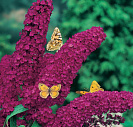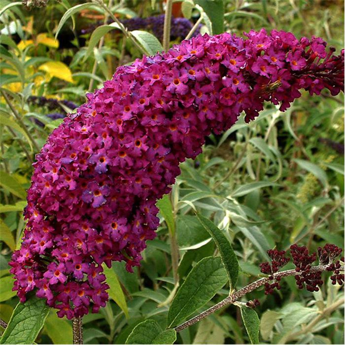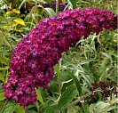 Цветёт с июля по октябрь. Цветки пурпурные с розовым глазком, собраны в 30-50 см длинные пахучие соцветия. Привлекает бабочек, один из самых ярких по цвету сортов буддлей.