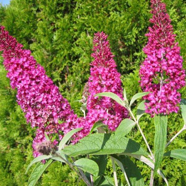 Цветки розовые, очень ароматные, собраны в крупные соцветия до 30 см длиной, окружаемые бабочками. Цветут от июля до октября. Прекрасный кустарник, цветущий поздним летом.