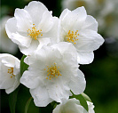 Цветет в мае – июне. Цветы белые, полумахровые, красивой формы. Сладкий аромат с нотками апельсина.