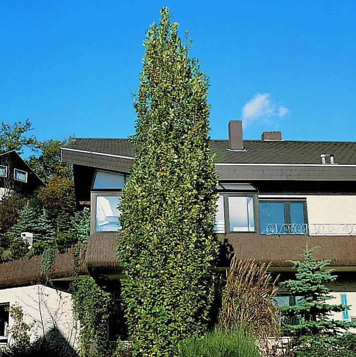 Крона плотная колонновиднаяй с характерными прямыми ветвями, примыкающими к стволу.