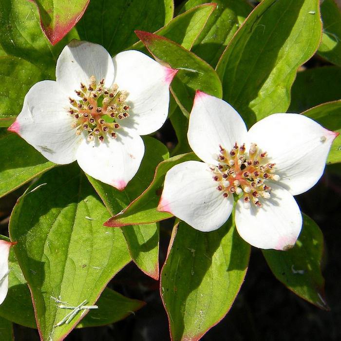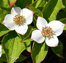 Мелкие зелёные цветки с крупными белыми прицветниками в мае-июне.