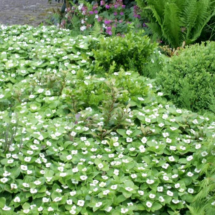Зеленый ковер, декоративен особо во время цветения, а так же яркими плодами, которые на фоне листьев выглядят очень эффектно.