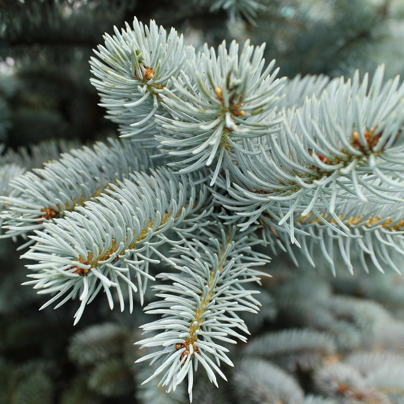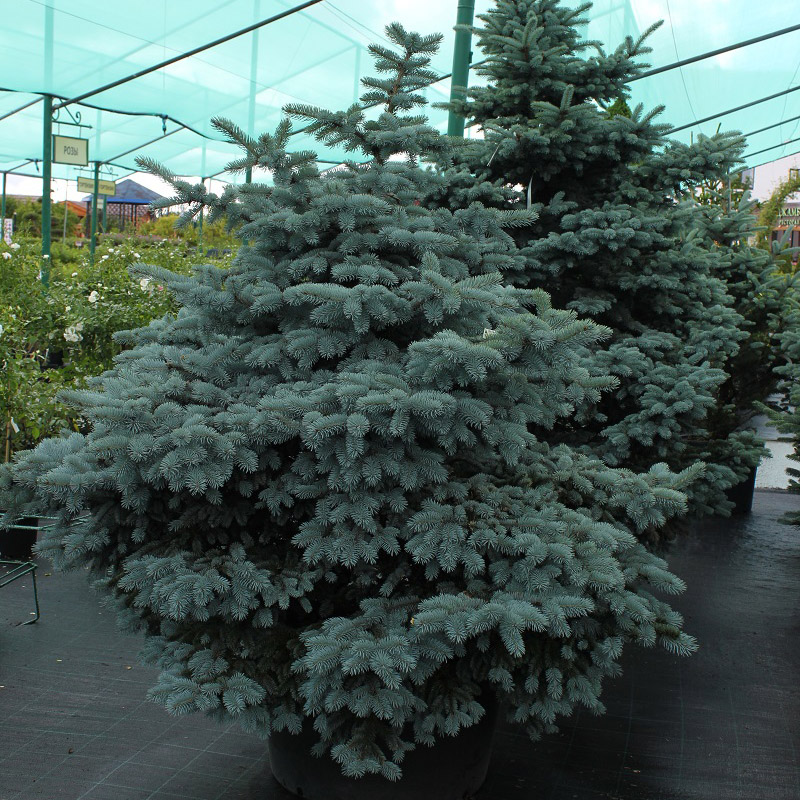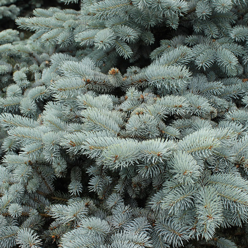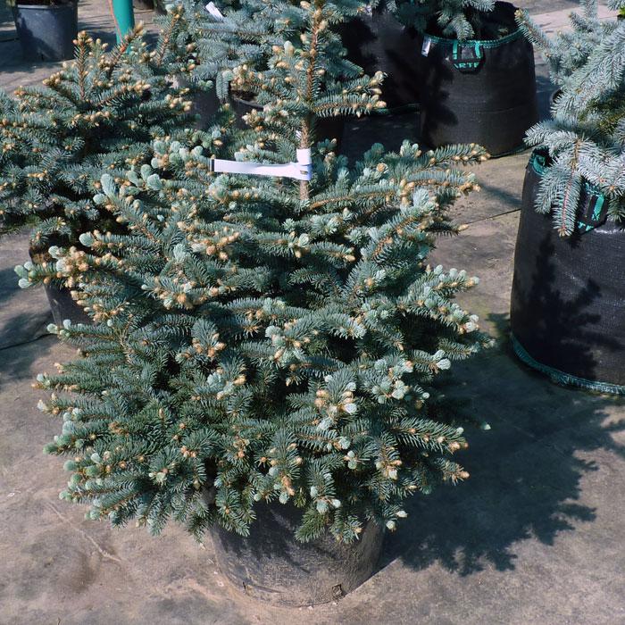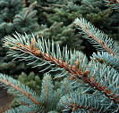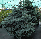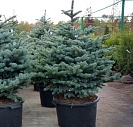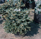 Крона приземистая, округлая. Ветви равномерно расположены по стволу, очень ветвистые, короткие, густо покрыты хвоей. Иглы острые, слегка серповидные, колючие, длинной - 3 см, серебристо-голубого цвета. Дерево светолюбиво. Может расти на затененных участках, тогда окраска чуть темнеет. Предпочитает питательную, рыхлую, дренирующую, влажную почву. Не выносит заливов, пересушки и уплотнения грунта. В сухой период нуждается в дождевании.