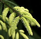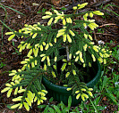 Хвоя короткая, темно-зеленая, блестящая. Весной молодые приросты имеют золотисто-желтую окраску, летом они становятся зелеными.
