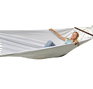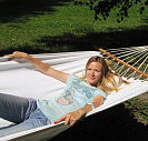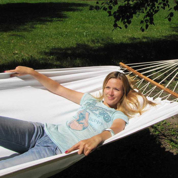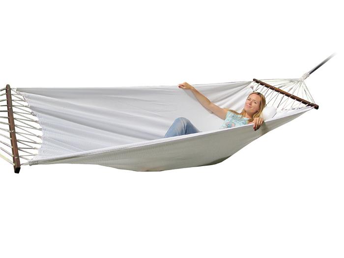 Для этой модели используются уникальные планки, изготовленные из бука. Каждая планка состоит из двух частей, соединенных четыремя мебельными стяжками. Перед стиркой планки можно снять с гамака за 2-3 минуты, используя вместо отвертки монету 1 рубль, а потом точно также легко поставить их обратно.