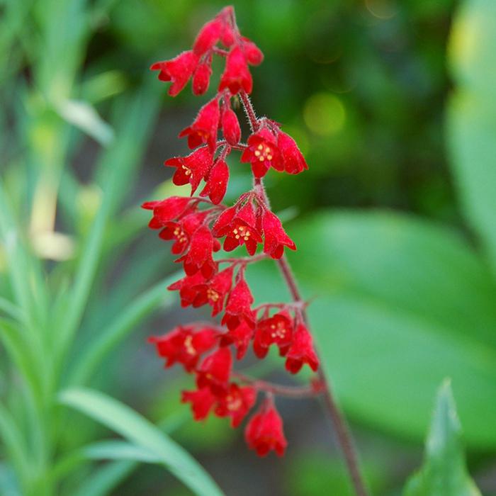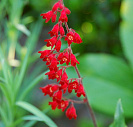Цветки мелкие колокольчатые, малиновые, розовые или красные, собраны в изящную продолговатую метелку до 20 см длиной. Цветет в июне-августе 60-90 дней. Плодоносит.