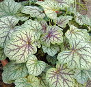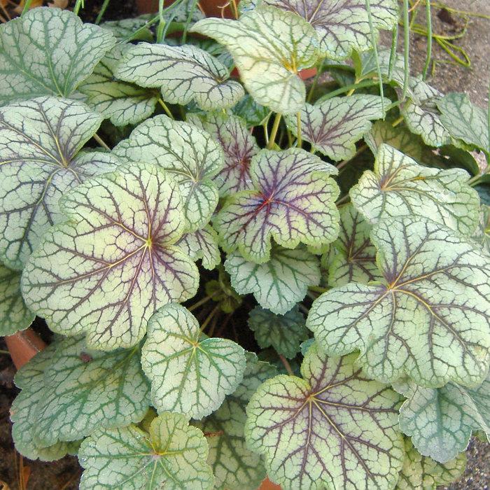Листья у гейхеры кроваво-красной имеют более плотные ткани, чем у других видов. Они округлые, зубчатые, опушенные. Образуют компактную розетку высотой 20-25 см. Высота довольно прочных цветоносов равна примерно 50 см.