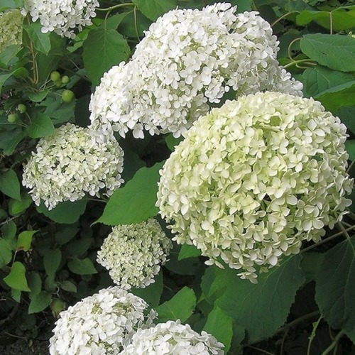 Цветет обильно с июля по октябрь, на побегах текущего года. Цветки 2 см в диаметре, при распускании бледно-зеленые, затем белые, собраны в соцветия диаметром до 25 см.