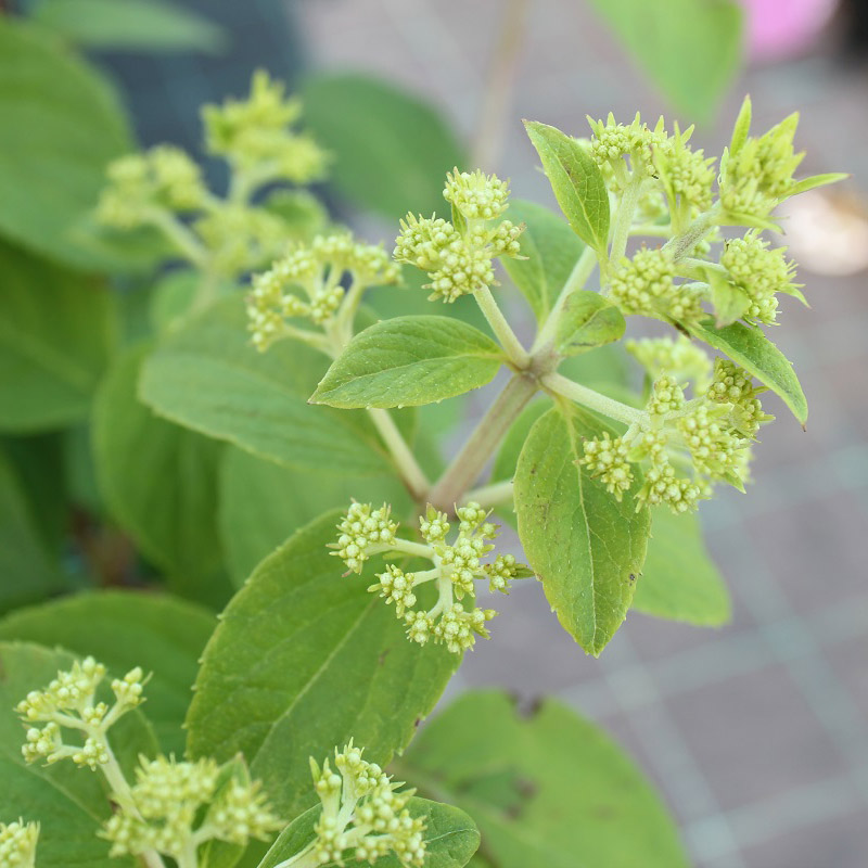 Соцветия плотные, конусовидные, цвет меняется от лимонного до розоватого. Время цветения: июль-сентябрь.