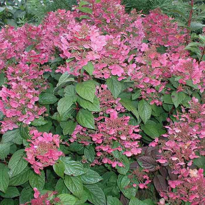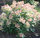 Зацветает раньше, чем другие сорта. Цветет с июля на протяжении 2 - 3 месяцев. Крупные кистевидные соцветия состоят из розовых стерильных цветков и бутонов фертильных цветков, которые открываются кремовыми цветочками. Фертильные цветки быстро окрашиваются в розовый цвет.