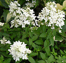 Цветет с июля по сентябрь. Окраска цветов бело-кремовая, с лаймово-зеленоватым отливом. Соцветия очень крупные, воздушные.