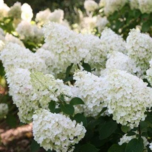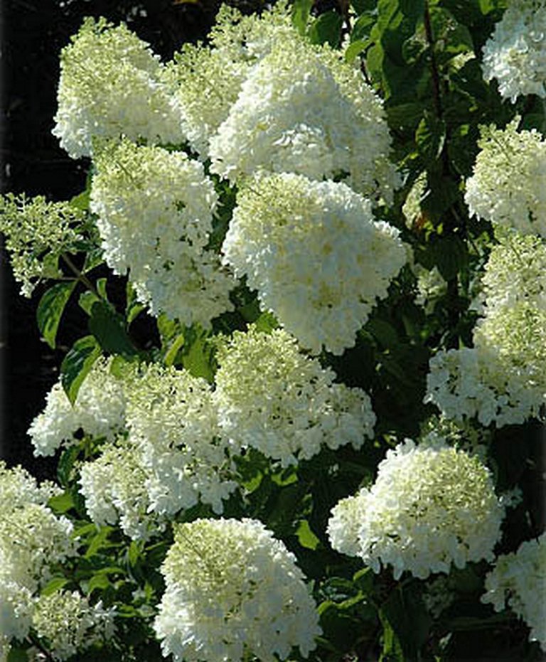 Широкие конусы соцветий из очень крупных, ярко-белых с серебристым оттенком цветков, которые частично розовеют со временем. Цветение с июля по октябрь, невероятно обильное!