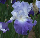 Стандарты (верхние лепестки) белые с легкой вуалью голубого оттенка по самому краю лепестка. Фолы (нижние лепестки) имеют у основания отчетливо белую серединку, переходящую в фиолетово-голубую широкую окантовку. Бородка бело-желто-кремового цвета.