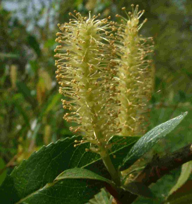 Цветет в конце апреля – начале мая (одновременно с распусканием листьев). Цветки в изогнутых серёжках, зеленовато-жёлтые, имеют приятный аромат. Медонос.