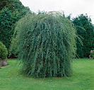 Отличается ажурной, плакучей формой кроны, синевато-зеленым цветом листвы и небольшими размерами. Блестящая кора красно-коричневого цвета.