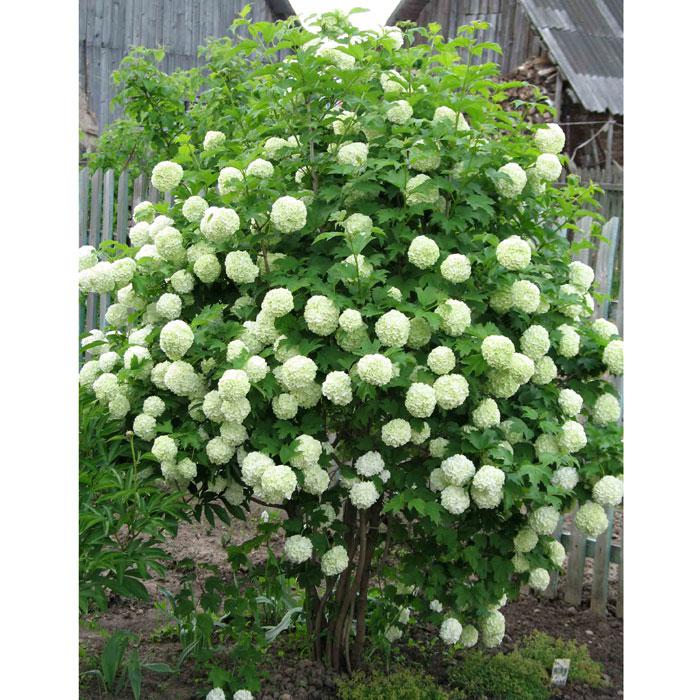 Эффектна во время цветения. Ценится за крупные, до 10 см, белые шаровидные соцветия, состоящие из одних стерильных цветков, а также красную осеннюю окраску листьев, долго сохраняющихся на кусте.