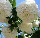 Май-июнь. Цветки в начале зеленоватые, затем белые, при отцветании розовеют, до 2,5 см в диаметре, стерильные, собраны в шаровидные соцветия, до 8 см в диаметре.