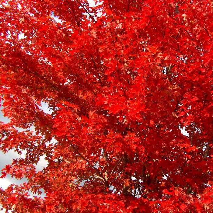 Листья серебристо-зеленые, крупные, с глубокими лопастями. Осенью листья становятся блестящими оранжево-красными.