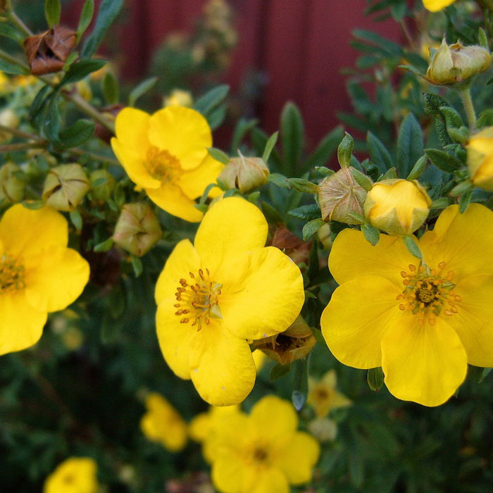 Лапчатка кустарниковая ‘Голдфингер’ декоративна благодаря обильному и продолжительному цветению.