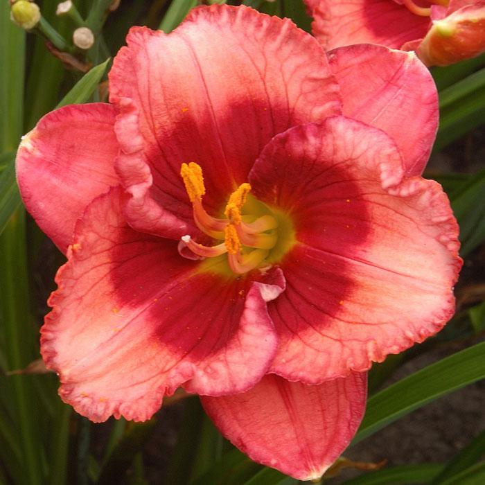 Цветки диаметром 10 см, розовые, в средней части клюквенно-красные, у основания жёлто-зелёные.