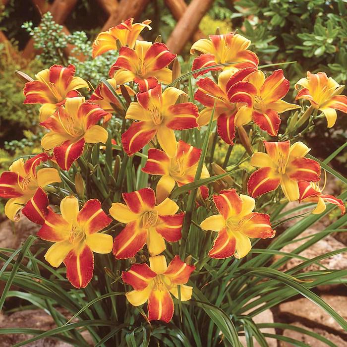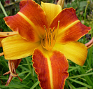 Растение с необыкновенной расцветкой цветка. Двухцветная, желто – красная окраска лепестков цветка, диаметром 8 – 10 см. Цветет обильно в средние сроки.