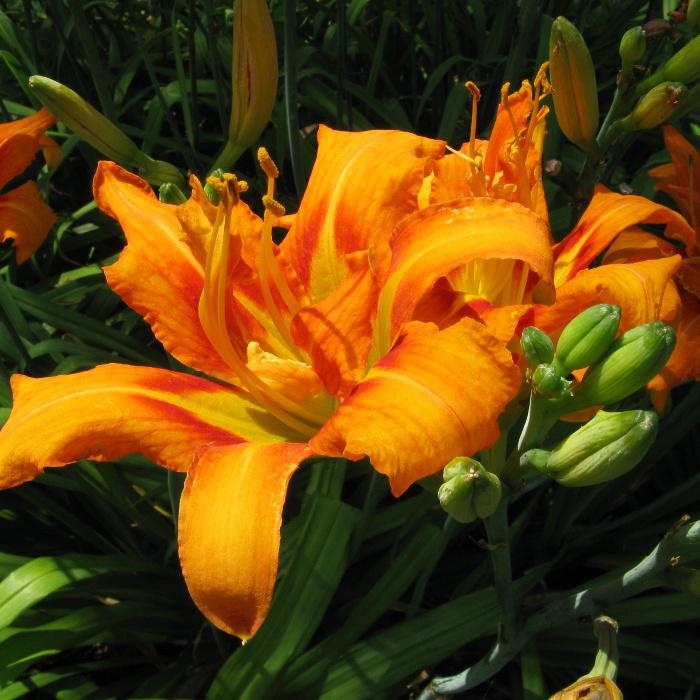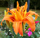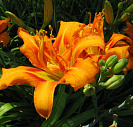 Полумахровая форма, нередко сопровождается пестролистностью. Цветет в июне- июле. Окраска цветов снаружи желтовато-оранжевые, внутри красные.