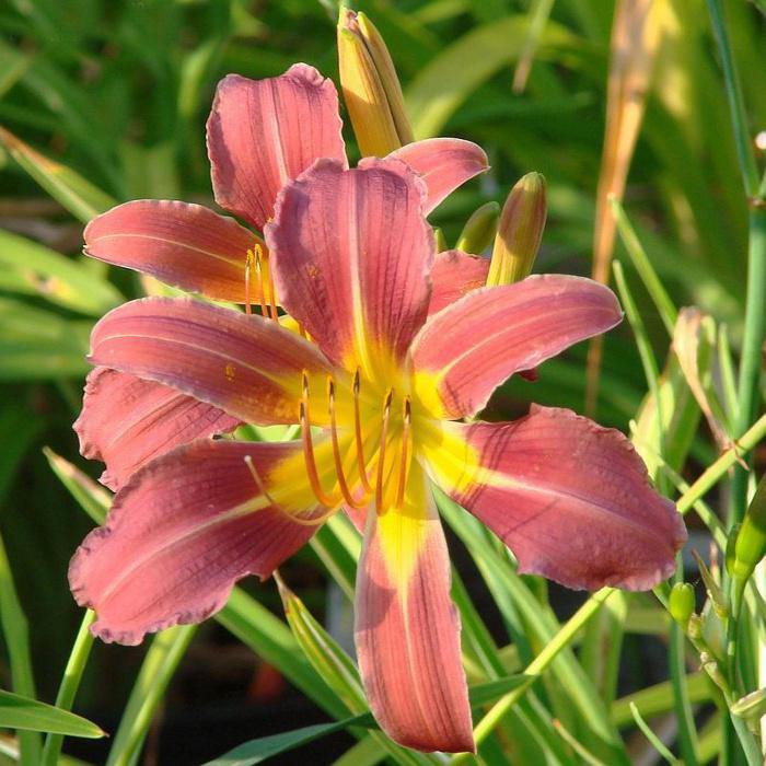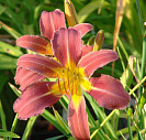 Цветок пурпурный с желтовато-зеленым горлом. Горло более темного, коричневато-сливового оттенка.