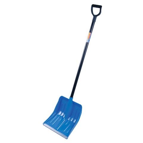 Рабочая часть из пластика, усиленная алюминиевой планкой, алюминиевая ручка, пластиковая D-образная рукоятка с дополнительными ребрами жесткости.