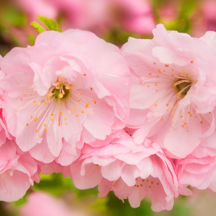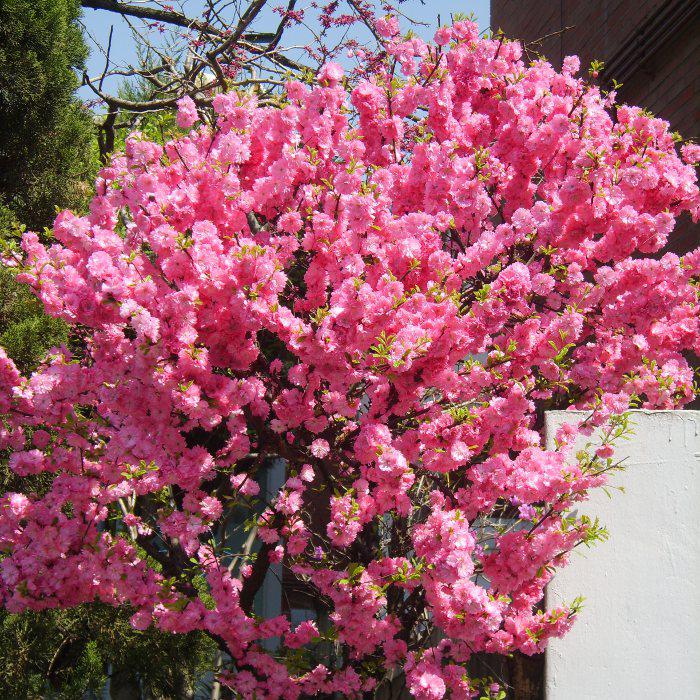 Цветы до 30 - 40 мм в диаметре. Цветет в первой половине мая в течение 10—14 дней. Цветки нежно-розового цвета, махровые, очень густо распологаются на ветвях.