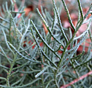 Хвоя в молодости чешуйчатая, затем игольчатая, серо-голубая, длиной 0,5-0,7 см.
