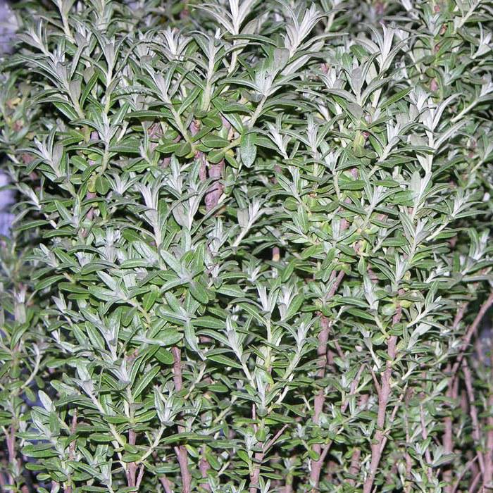 Побеги серебристо-серые, затем серо-коричневые. Листья серебристо-серые, ланцетные. Листья не окрашиваются осенью, долго оставаясь серебристыми.