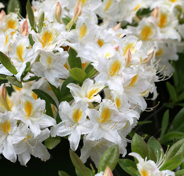 Рододендрон гибридный (азалия) 'Шнееголд' (белый с желтой серединой)