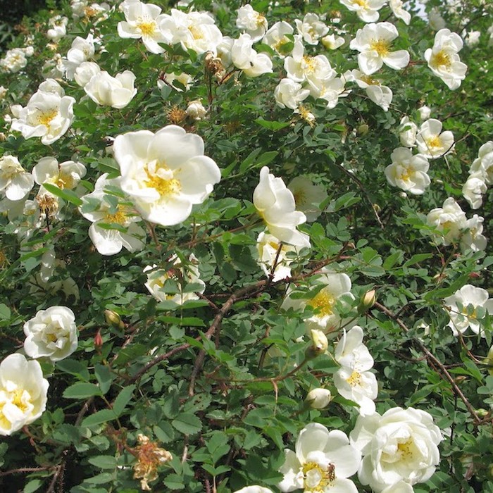 Цветки белые, бледно-кремовые иногда с розоватым оттенком 2-5 см в диаметре. Ароматные. Плоды в зрелом состоянии черные, шаровидные.