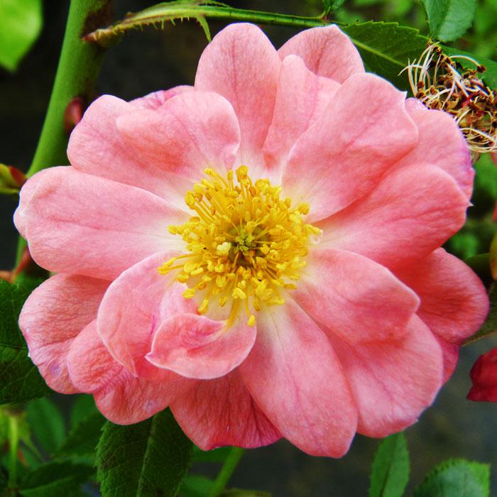 Персиково-розовый, 20-30 лепестков в одном цветке.