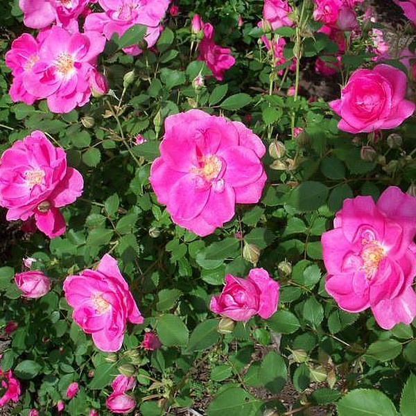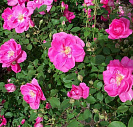 Цветы глубокого розового цвета, в группах 5-8 шт., диаметр цветка в роспуске 7-8 см., махро-вость до 20 лепестков.