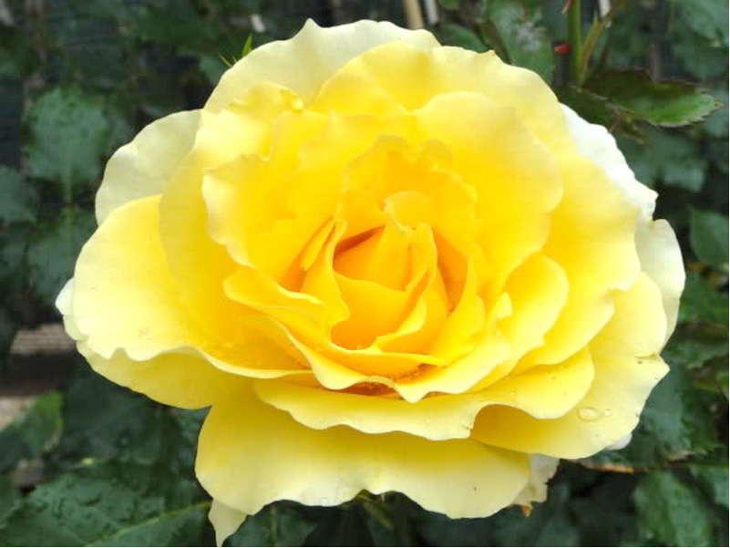 Цветок: Лимонно-желтый с красным оттенком, чашевидный.