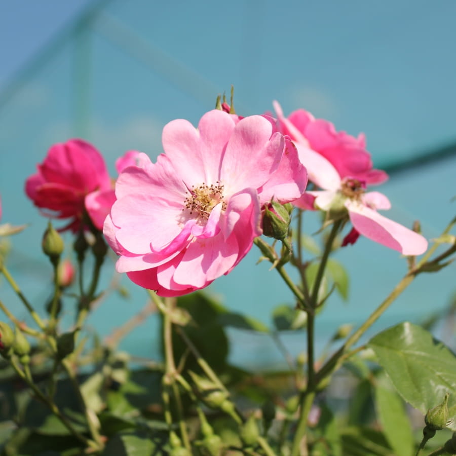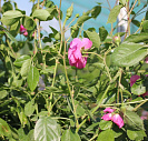 Цветки бледно-розовые, с малиновым реверсом – примечательное сочетание, глубоко чашевидные.
