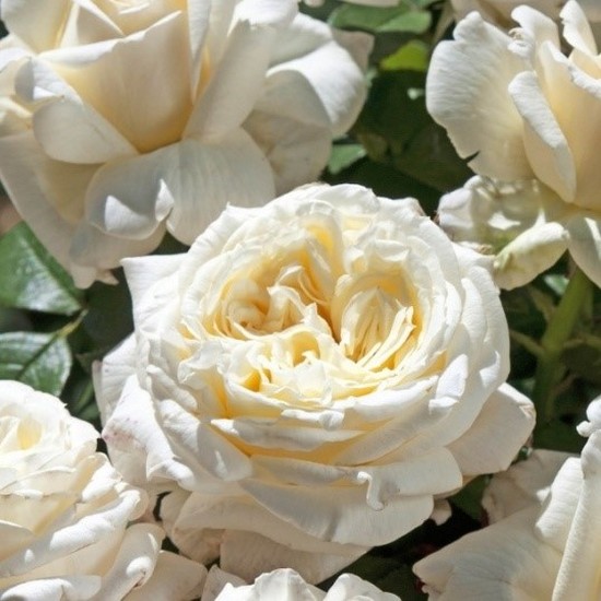 Цветок белый с кремовыми внутренними лепестками, чашевидный, с высоким центром, густомахровый, 70 - 90 лепестков в одном цветке, диаметр цветка 7 – 8 см, обладает легким ароматом, хорошо держит форму.