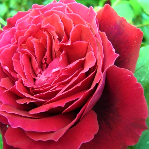 Цветок 10-13 см в диаметре, густомахровый, ярко-бордового цвета.