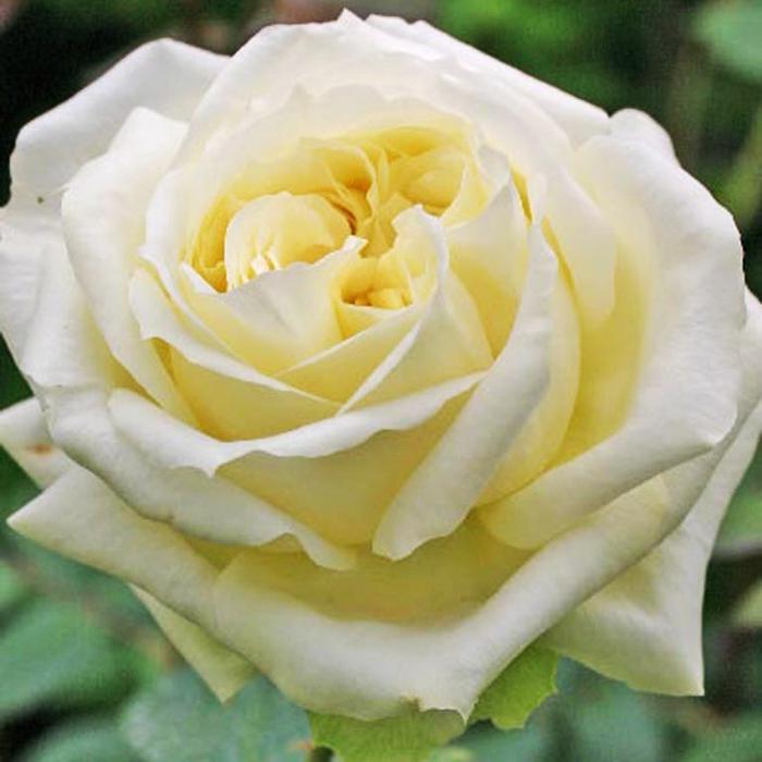 Бутон зеленый, бокаловидный. Цветок зеленоватый с оттенком слоновой кости, чашевидный, распускается медленно, густомахровый, 50-57 лепестков в одном цветке, диаметр цветка 10-12 см, обладает легким фруктовым ароматом.