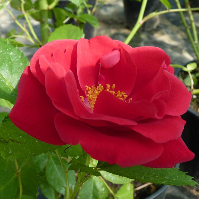 Цветок: Темно-красный, чашевидный, с высоким центром.
