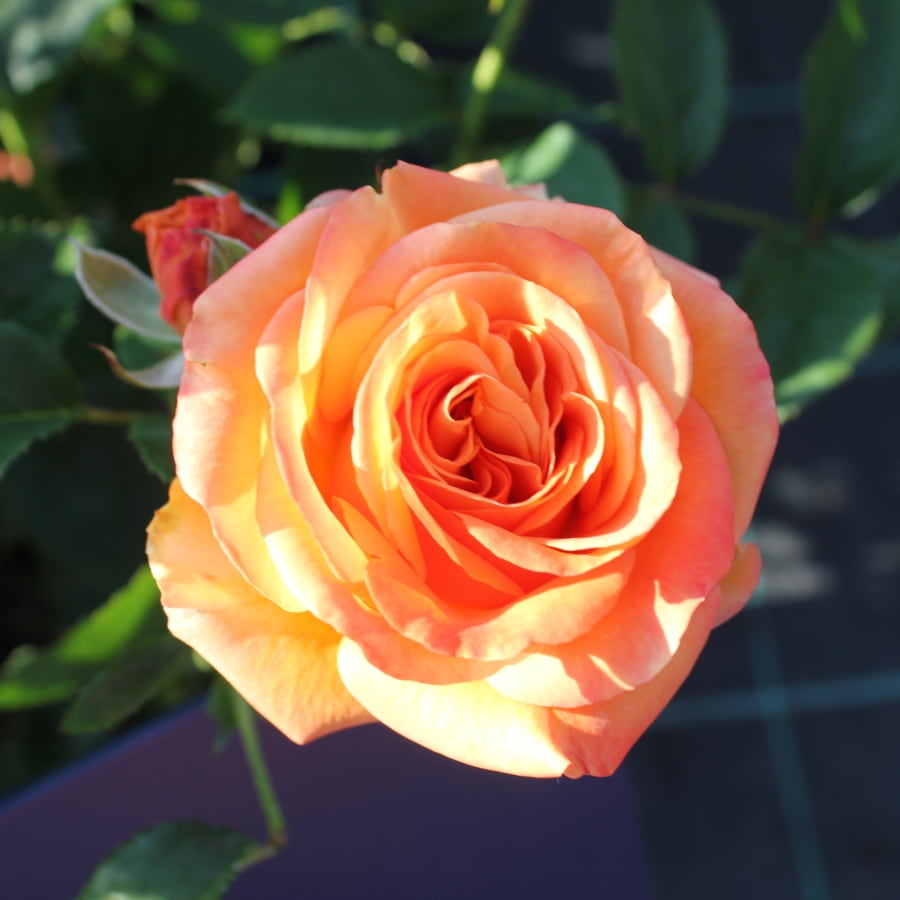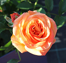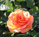 Компактная роза с оранжево-желтыми с розовым краем махровыми цветками диаметром 9-10 см. Аромат легкий, чайной розы.