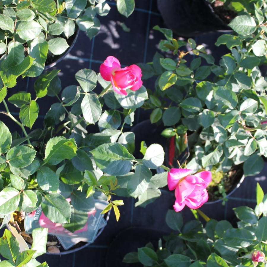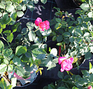 Цветки крупные, махровые, малиново-розовые, с легким ароматом, размещаются по одному на крепких побегах.