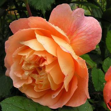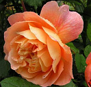 Цветок бутон темно-красный с оранжевыми штрихами, цветок лососево-оранжевый с золотисто-оранжевой обратной стороной лепестков, чашевидный, густомахровый, диаметр цветка 8-10 см, обладает насыщенным фруктовым ароматом с нотками груши, винограда и цитрусовых.