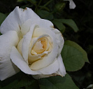 Крупные цветки (14-16 см), по форме напоминающие чайно-гибридные розы. Едва раскрывшись, они очень бледно-лимонные, с жемчужно-розовым центром, позднее становятся чисто белыми. Цветки густомахровые, появляются практически без перерыва все лето, повреждаются дождем.